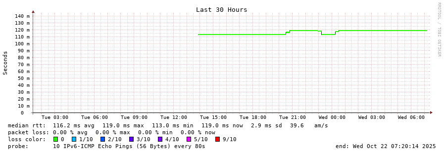 14 > 2a02:2f00:8708::e7 (2a02:2f00:8708::e7) [AS8708] 116.034ms 116.081ms 116.043ms