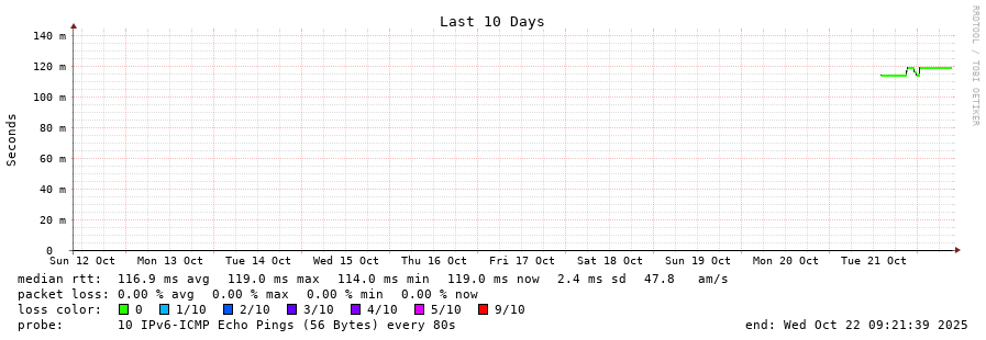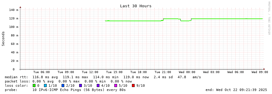 traceroute to 2a02:2f05:2113:7f00:220:4aff:fee0:220f (2a02:2f05:2113:7f00:220:4aff:fee0:220f), 30 hops max, 80 byte packets - Generated at 2025-10-22 09:15:01