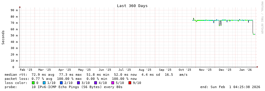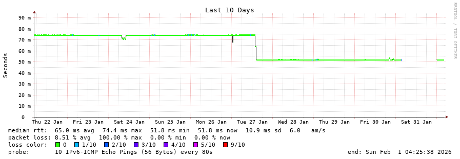 5 > 2604:2dc0:0:101::4ea (2604:2dc0:0:101::4ea) [*] 0.632ms 0.397ms 0.398ms