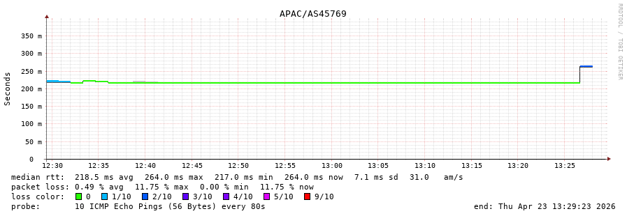 45. Median RTT 0.259 seconds